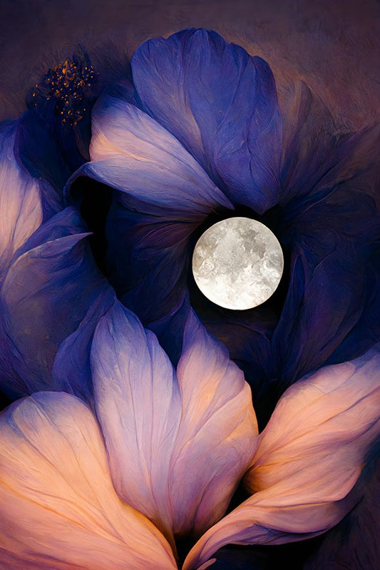 The Moon Flowers Black Modern Wood Framed Art Print by Treechild