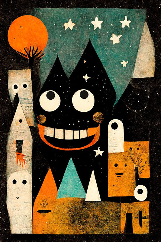 Monster Ville Black Modern Wood Framed Art Print by Treechild