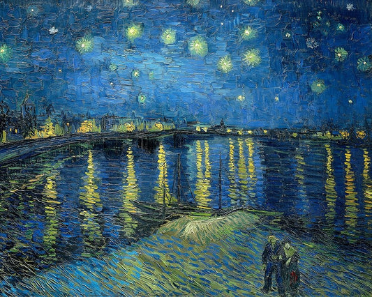 The Starry Night Over The Rhone Black Modern Wood Framed Art Print by Pictufy