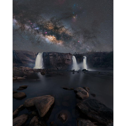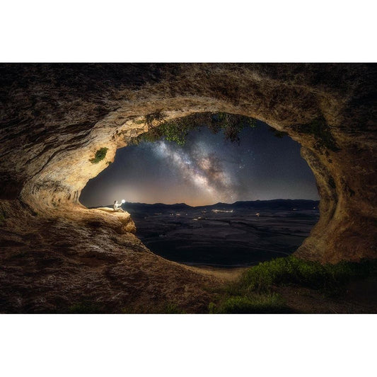 In the cave with starry sky Black Modern Wood Framed Art Print by Suzuki, Daiki