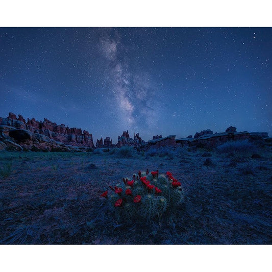 Milky Way Over Blooming Cactus In Needles District Black Modern Wood Framed Art Print by Xu, Mei