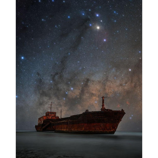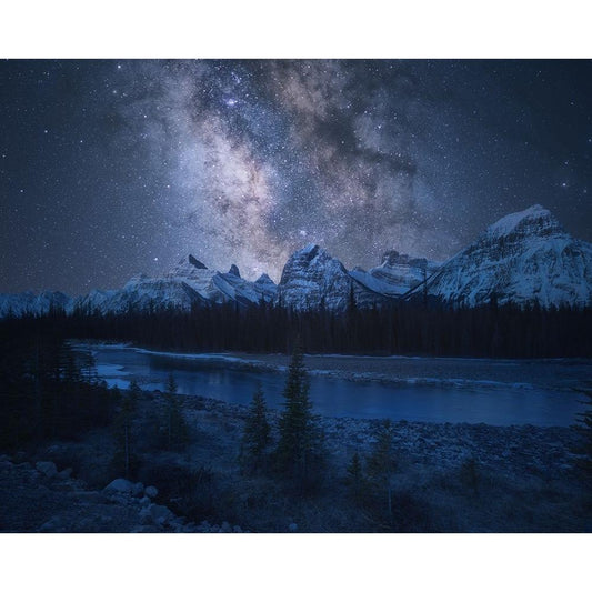 Milky Way over Mountains Black Modern Wood Framed Art Print by F. Turienzo, Carlos