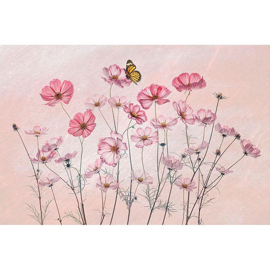 Cosmos And Butterfly Black Modern Wood Framed Art Print by Jacobs, Lydia