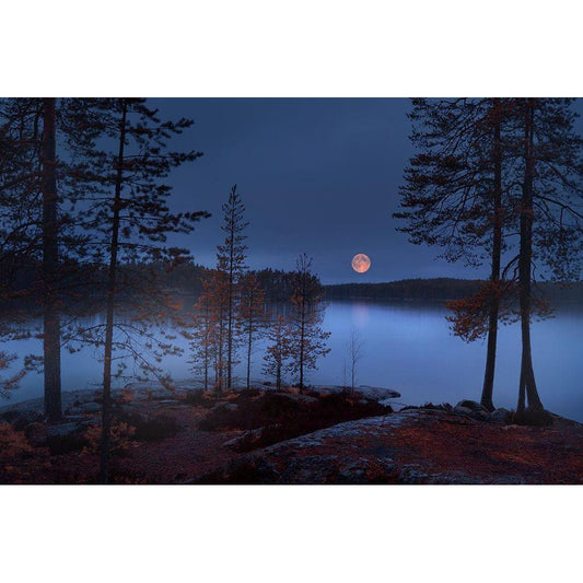 Red Moon Black Modern Wood Framed Art Print by Georgieva V, Nikki