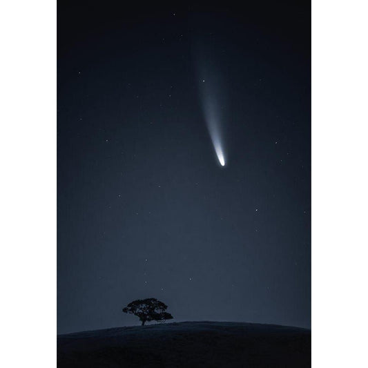 Comet Neowise Black Modern Wood Framed Art Print by Zhu, Hua