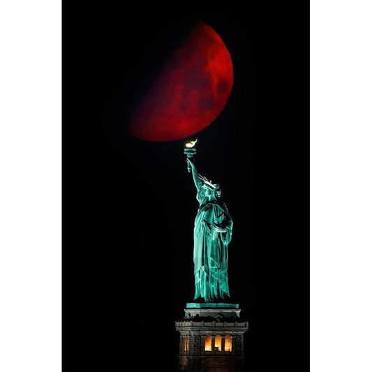 Statue Of Liberty And Moonset Black Modern Wood Framed Art Print by Zhu, Hua