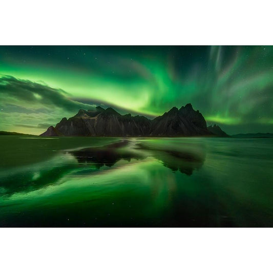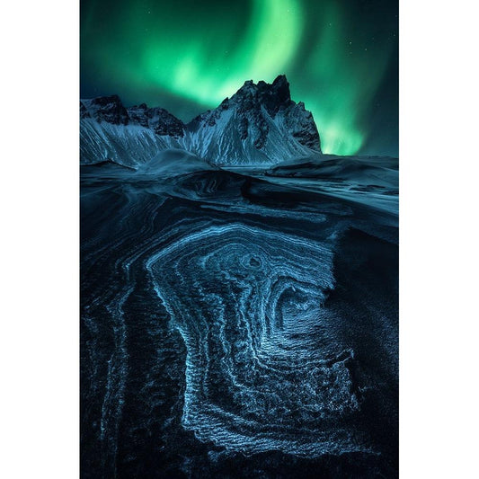Night In Iceland Black Modern Wood Framed Art Print by Pedretti, Ivan