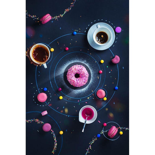 Space Donut Black Modern Wood Framed Art Print by Belenko, Dina