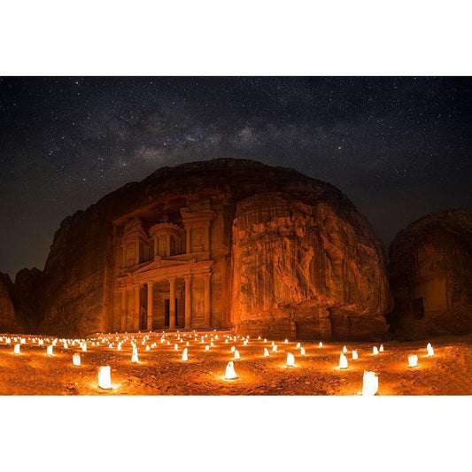 Petra By Night Black Modern Wood Framed Art Print by Jamal, Khalid