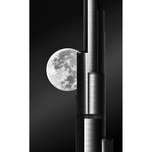 Super Moon Burjkhalifa Black Modern Wood Framed Art Print by Anjum, Zohaib