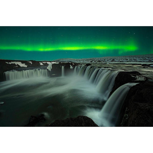 Godafoss Black Modern Wood Framed Art Print by Zhu, Jingshu