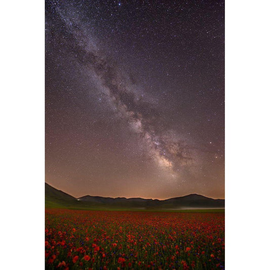 Milky Way Over Lonely Tree Black Modern Wood Framed Art Print by Ferrero, Ivan