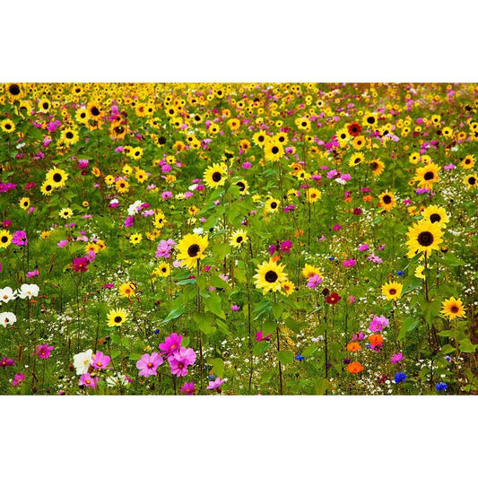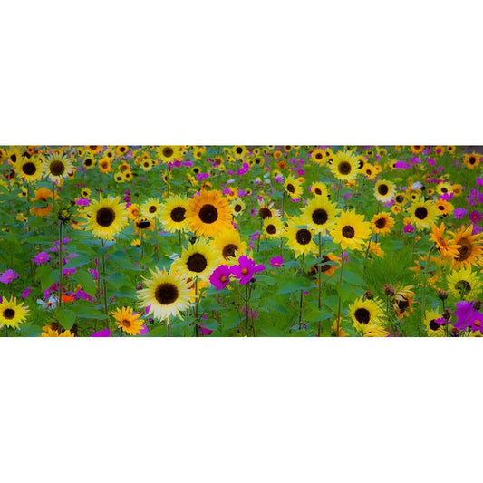 USA-New Hampshire meridian planted with sunflowers and cosmos flowers along Interstate 95 Black Modern Wood Framed Art Print by Gulin, Sylvia