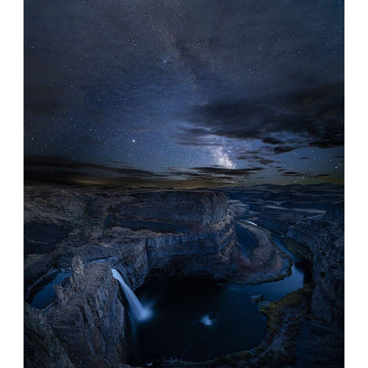 Washington State Palouse Falls and the Milky Way Palouse Falls State Park Digital Composite Black Modern Wood Framed Art Print by Luhm, Gary