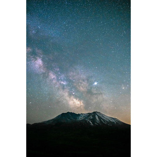 The Milky Way rising above Mt St Helens-a active stratovolcano in Washington State-USA Black Modern Wood Framed Art Print by Probst, Greg