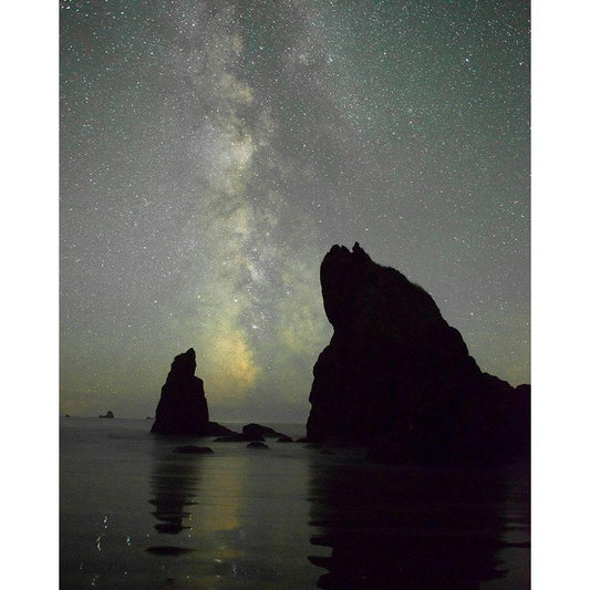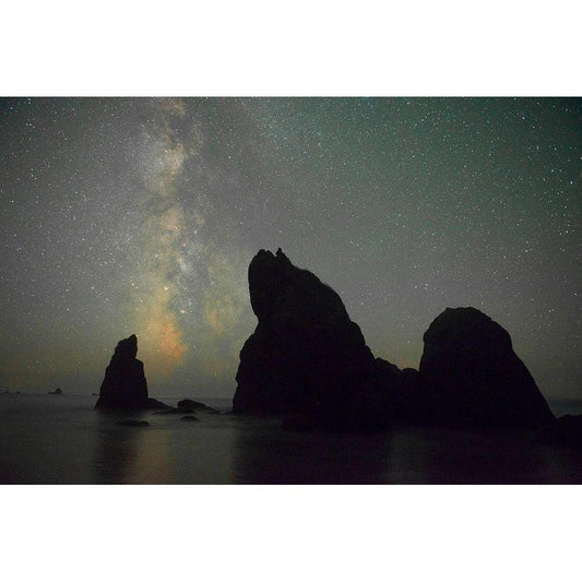 The Milky Way rising behind sea stacks on Ruby Beach-Olympic National Park-Washington State Black Modern Wood Framed Art Print by Probst, Greg