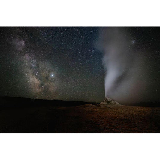 Wyoming-Yellowstone National Park Milky Way above erupting White Dome Geyser Black Modern Wood Framed Art Print by Jaynes Gallery