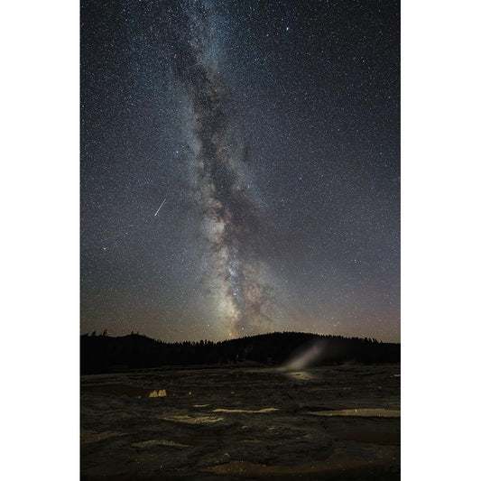 USA-Wyoming-Yellowstone National Park Meteor streaks across Milky Way Black Modern Wood Framed Art Print by Jaynes Gallery