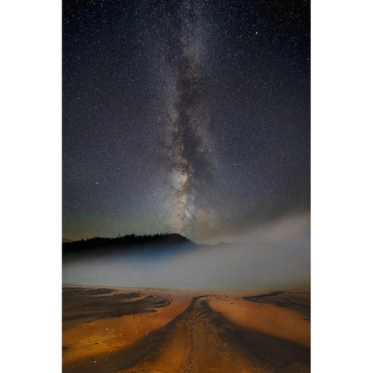 USA-Wyoming-Yellowstone National Park Milky Way above Grand Prismatic Spring Black Modern Wood Framed Art Print by Jaynes Gallery