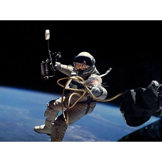 Astronaut Edward White during first EVA performed during Gemini 4 flight Black Modern Wood Framed Art Print by NASA