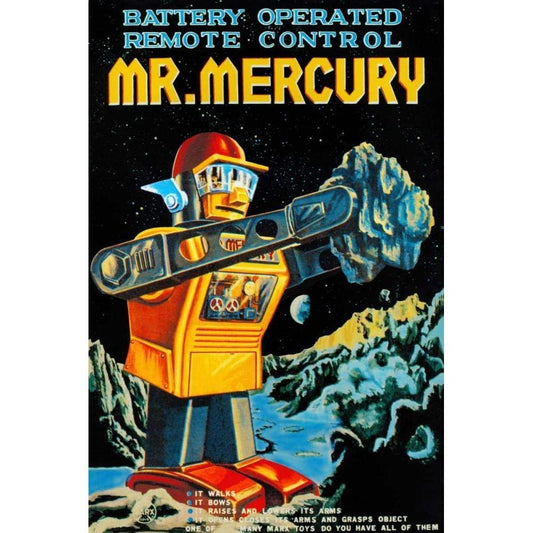 Battery Operated Remote Control Mr. Mercury Black Modern Wood Framed Art Print by Retrobot