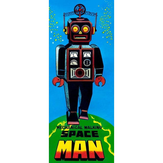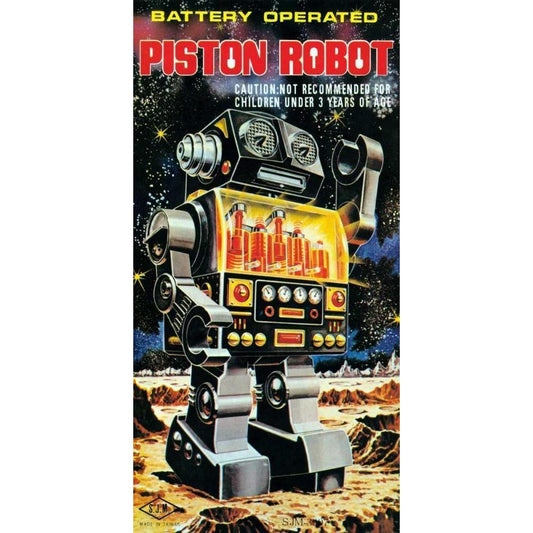 Battery Operated Piston Robot Black Modern Wood Framed Art Print by Retrobot