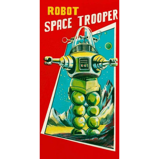 Robot Space Trooper Black Modern Wood Framed Art Print by Retrobot