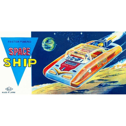 Friction Powered Space Ship SS-18 Black Modern Wood Framed Art Print by Retrobot