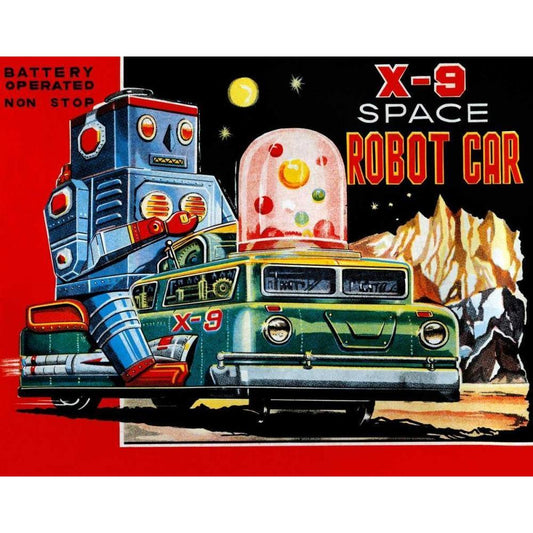X-9 Space Robot Car Black Modern Wood Framed Art Print by Retrobot