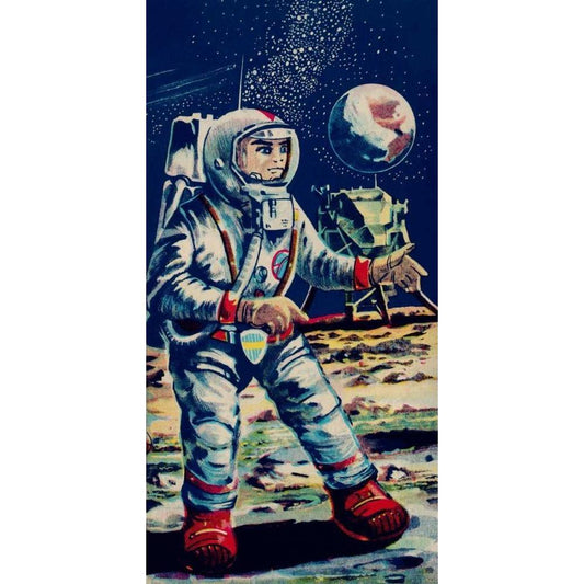 Moon Astronaut Black Modern Wood Framed Art Print by Retrobot