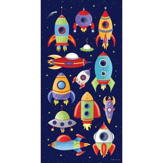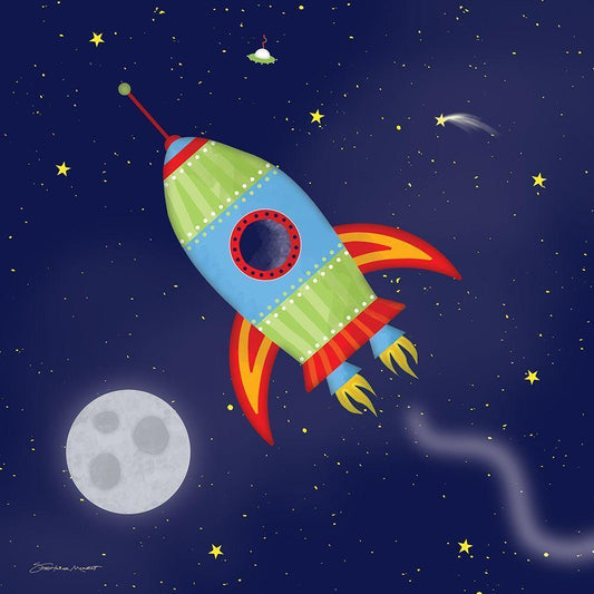 Rocket In Space Black Modern Wood Framed Art Print by Marrott, Stephanie