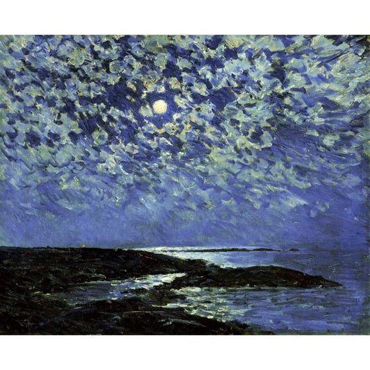 Moonlight, Isle of Shoals Black Modern Wood Framed Art Print by Hassam, Childe
