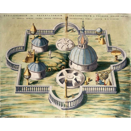 Stellebourg Observatory and Instruments Black Modern Wood Framed Art Print by Blaeu, Joan
