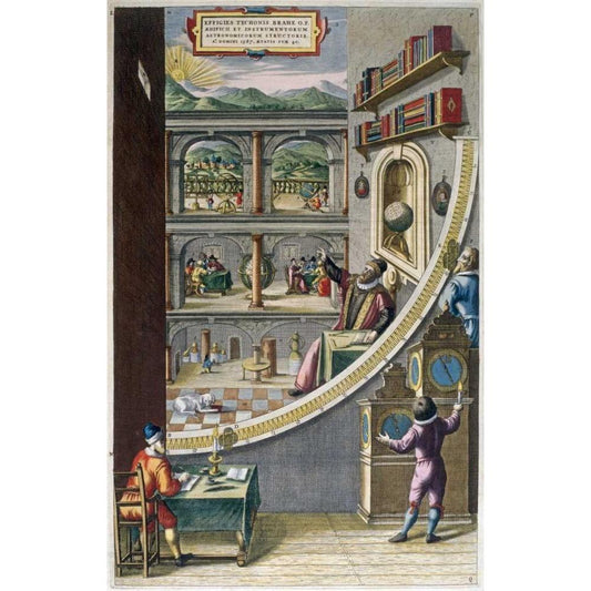 Tycho Brahe and Others With Astronomical Instruments Black Modern Wood Framed Art Print by Blaeu, Joan