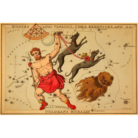 Bootes Canes Venatici, Coma Berenices, and Quadrans Muralis, 1825 Black Modern Wood Framed Art Print by Aspin, Jehoshaphat