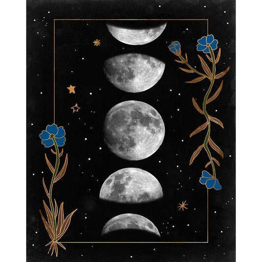 Moon Phases I Black Modern Wood Framed Art Print by Wang, Melissa