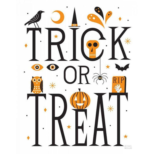 Festive Fun Trick or Treat Black Modern Wood Framed Art Print by Mullan, Michael