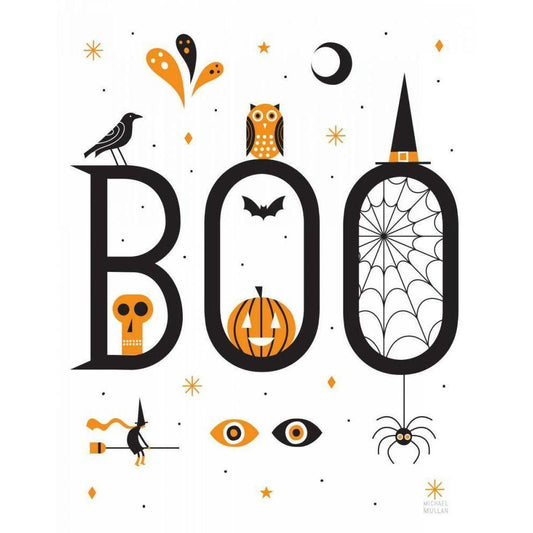Boo Bright White Black Modern Wood Framed Art Print by Mullan, Michael