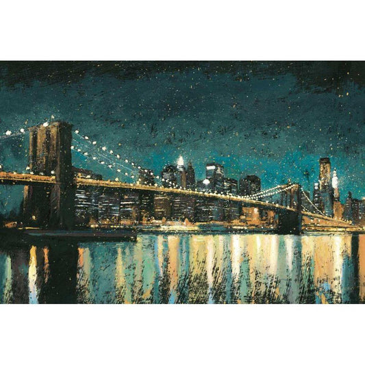 Bright City Lights Teal I Black Modern Wood Framed Art Print by Wiens, James