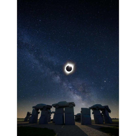 Eclipse at Carhenge Black Modern Wood Framed Art Print by ODell, Dale