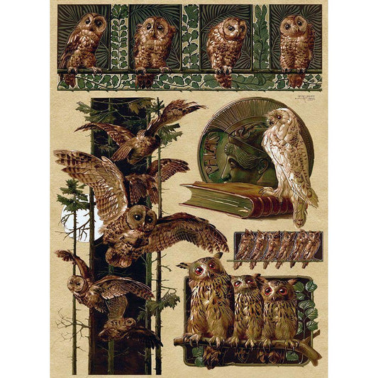 Owls Black Modern Wood Framed Art Print by Vintage Apple Collection
