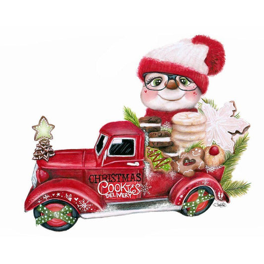 Cookie Delivery Snowman Black Modern Wood Framed Art Print by Sheena Pike Art
