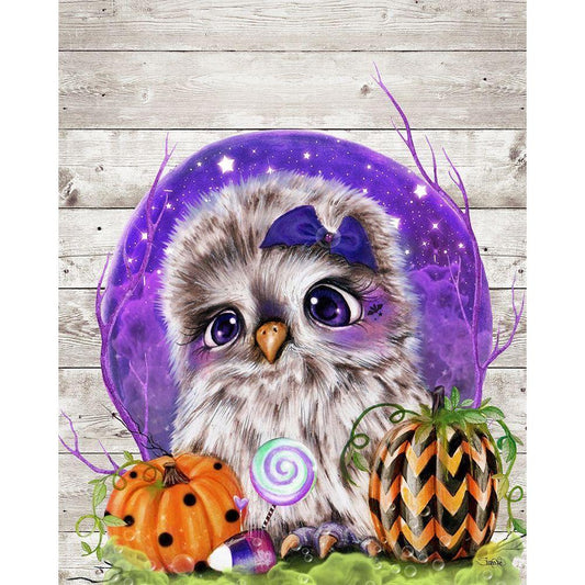 Sweet Halloween Owl Black Modern Wood Framed Art Print by Sheena Pike Art