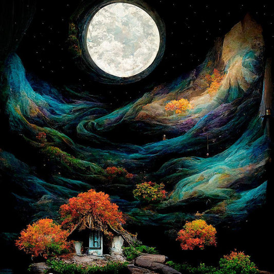 Moonlit Manor Black Modern Wood Framed Art Print by Sheena Pike Art