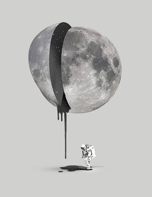 Moon and Back I Black Modern Wood Framed Art Print by Sasha