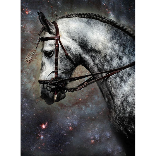 The Horse Among the Stars Black Modern Wood Framed Art Print by Jenny Rainbow Fine Art