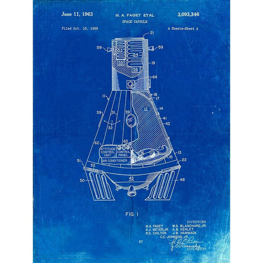 PP229-Faded Blueprint NASA Space Capsule 1959 Patent Poster Black Modern Wood Framed Art Print by Borders, Cole