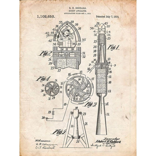 PP230-Vintage Parchment Robert Goddard Rocket Patent Poster Black Modern Wood Framed Art Print by Borders, Cole