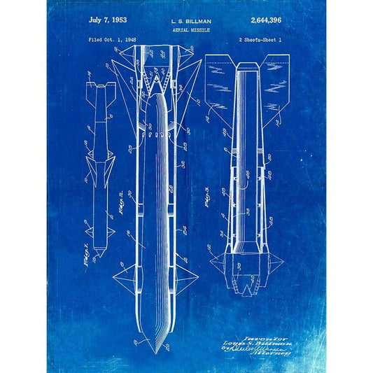 PP384-Faded Blueprint Aerial Missile Patent Poster Black Modern Wood Framed Art Print by Borders, Cole