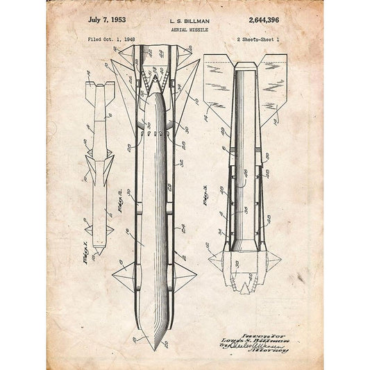 PP384-Vintage Parchment Aerial Missile Patent Poster Black Modern Wood Framed Art Print by Borders, Cole